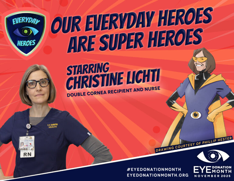 An honoree will be selected from each category and will have their photo converted into a superhero comic book cover by comic book artist and bilateral cornea recipient, Phillip Hester. Honorees will be able to keep the artwork, which will also be used as social media graphics during Eye Donation Month.