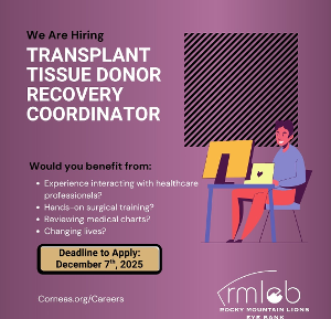 We are hiring! Become part of a mission that transforms eye donor gifts into hope.